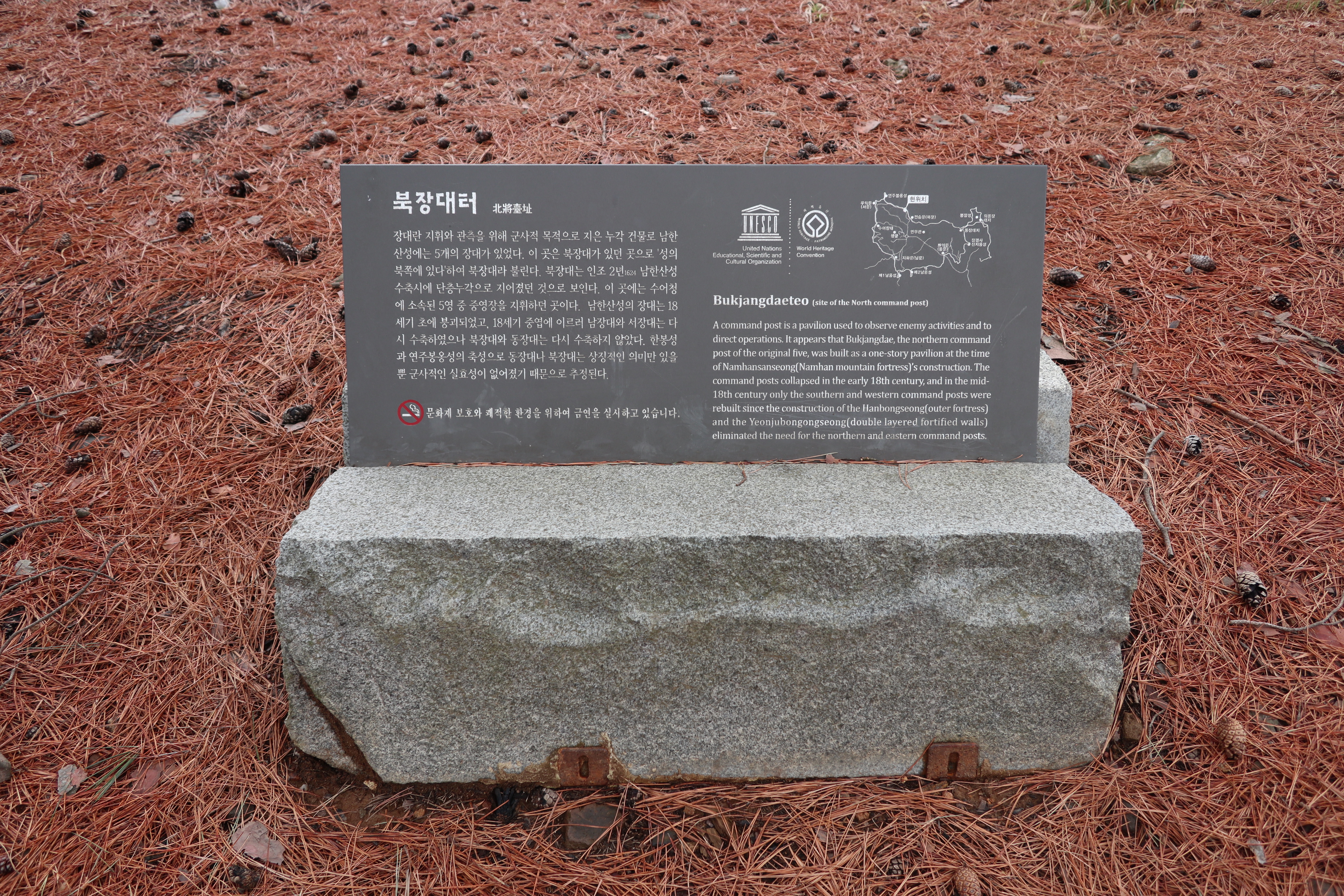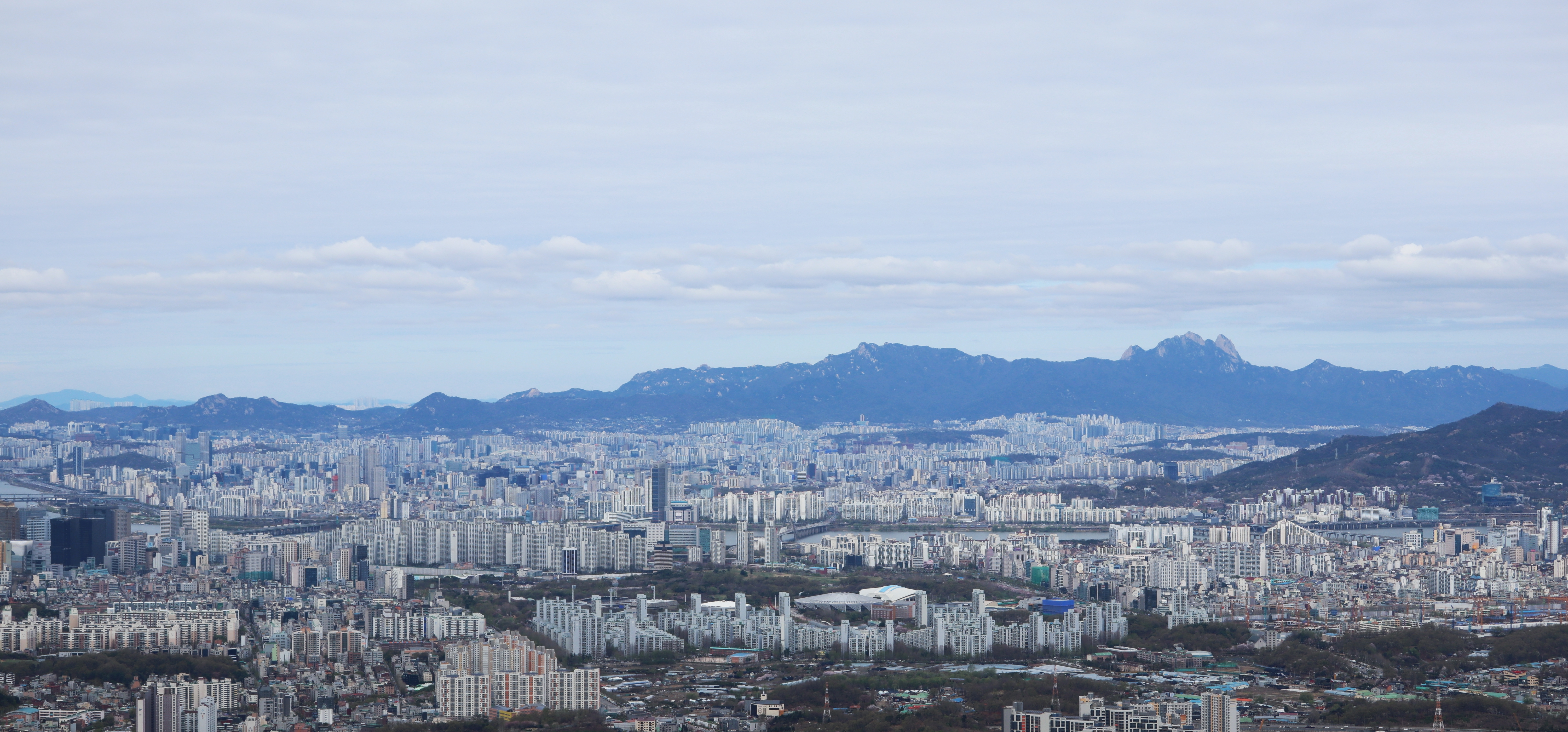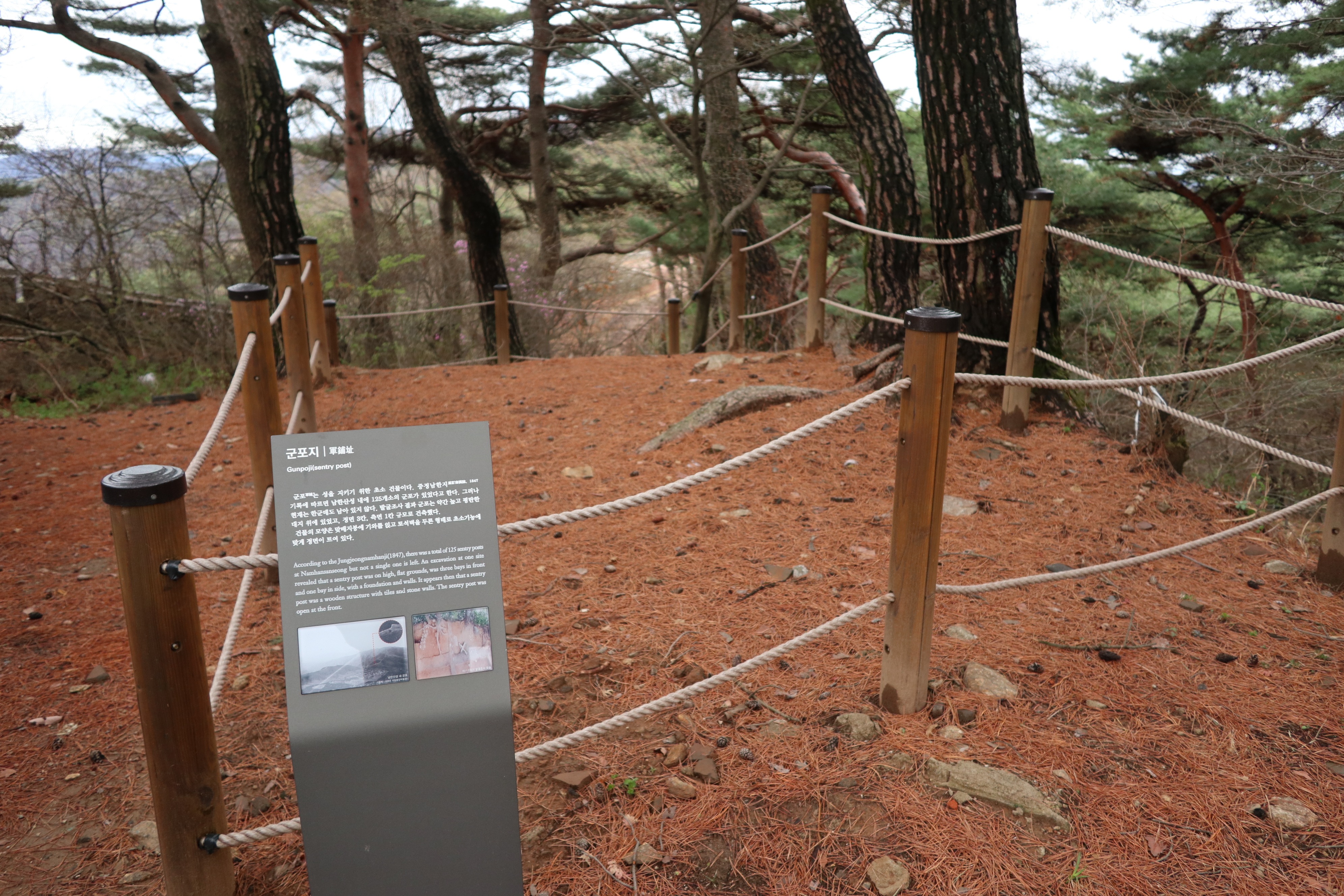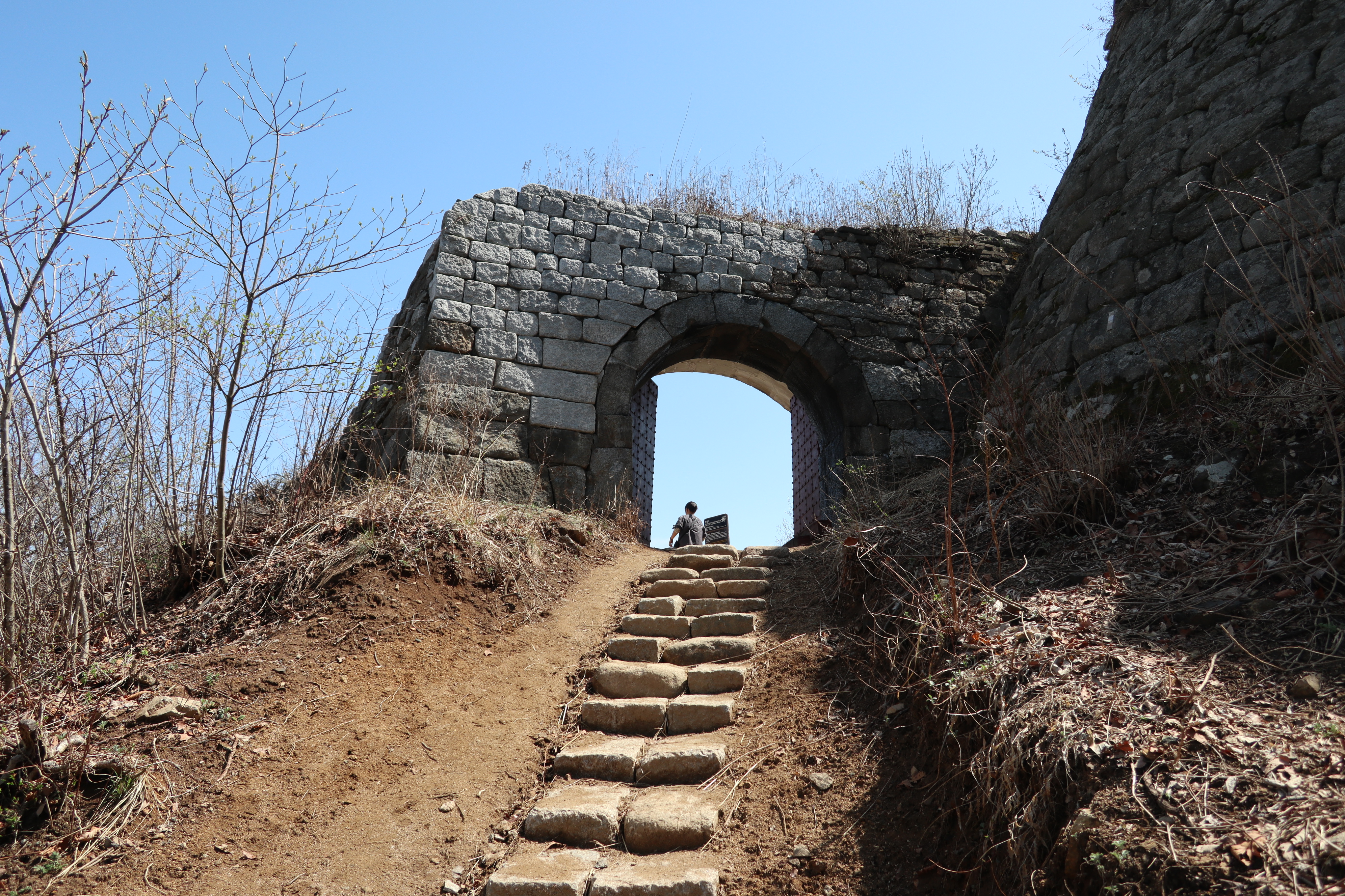 남한산성 회전 교차로10:19 세계유산 남한산성, 뒤편으로 남한산성 행궁남한산성 역사 테마길북문(전승문) 진입로는 공사중이다.10:24 북문(전승문)에서 좌측 남문(지화문)까지는 탐방로 정비공사중이다.공사중이기는 하지만 우리는 좌측 수어장대 방향으로 성곽길 따라 진행한다.북문(전승문) 성곽길을 올라 좌측방향 진행이다.북문을 통과한다.새벽까지 내린비로 길이 많이 젖어 있다.오름길에 북문 방향을 돌아 본다.우측으로 예봉산과 검단산이 조망되어 당겨 본다.동장대터에서 북문으로 이어져 오는 성곽길하늘에 구름이 잔뜩 끼어 있다.성곽길을 따라 걷는 호젓한 길이다.10:31 북장대터다시 탐방로를 만난다.북문(전승문)에서 0.3Km 진행지점우측 저 멀리로 경기 하남시 방향이 조망된다. 능선 너머 좌측은 서울시 동남권 시내이다.좀더 당겨 본다. 연주봉옹성에서 뻗어 내리는 능선길이다.경기 하남시 상사창동 방향이다. 수 많은 공장들이 들어서 있다.탐방로에서 다시 우측 성곽길 따라 오르면이내 다시 탐방로와 합류된다. 저 앞쪽에서 다시 우측 성곽길 따라 오른다.10:38 북장대터 인근산성이다보니 약간씩의 오르내림이 있다.연주봉옹성 도착, 지금은 공사중으로 폐문상태이다.이곳 제5암문을 나서게 되면연주봉옹성으로 나갈 수 있다. 지금은 제5암문이 폐쇄되어 나갈 수 없다. 성곽길 외곽을 따르는 등로는 정상적으로 운영중이다.드디어 서울시내가 조망되기 시작한다.더 당겨 본다. 연주봉옹성에서 조망되는 조망은 더 막힘이 없다.롯데타워와 그 뒤로 남산타워가 나란히 조망된다.연주봉옹성에서 뻗어나가는 능선길저 멀리로 북한산과 도봉산에 이어 수락산과 불암산, 그 앞쪽으로 망우산,용마산,아차산이 한눈에 펼쳐진다.북한산 전체 줄기를 담아 본다. 삼각봉이 웅장하기만 하다.천마산에서 예봉산으로 이어져 오는 수도권55산길인증샷도 남겨 보고롯데타워을 중간에 두고 좌측 남산과 우측 안산이다.청계산과 관악산 방향 조망좌측 광교산에서 청계산, 관악산으로 이어지는 능선이다.10:54 서문(우익문)진달래가 물기를 머금고 있다.비슷한 조망이 계속 이어진다.우리는 지화문(남문)방향 진행이다.수서역에서 대모산,구룡산,우면산을 거쳐 관악산으로 이어지는 능선이다.위례신도시(서울) 방향이제는 남산-안산-인왕산 능선길이 조망되고우측 저 멀리로 북한산 삼각봉에서 도봉산 자운봉을 거쳐 우측 수락산과 불암산으로 이어진다.북한산과 도봉산이 서로 마주보고 있다.11:04 수어장대 역시 공사중으로 출입금지 상태이다.수어장대 진입로다시 성곽길 우측방향도봉산이 웅장한 모습을 보여준다.수락산(뒤)과 불암산(앞)저 앞쪽은 남한산성 검단산이다.이제는 성남시와 분당구가 조망된다.좀 더 당겨본다.서울공항이다.위례신도시(서울)와 관악산 방향11:15 영춘정 통과영춘정이다.남문(지화문)으로 이어지는 성곽길저 아래에 남문이 조망된다.11:27 남문(지화문) 통과이제는 남장대(터) 방향 진행이다.지화문(남문)성남시 남한산성역에서 올라오는 등산로남장대(터)를 향해 또 한번 치고 오른다.오름길에 뒤돌아보는 남문남장대(터) 방향으로 진행제1남옹성이 보수공사가 한창이다. 저 멀리로 남한산성 검단산이다.이제부터 좌익문(동문) 이정표 따라 진행한다.11:39 남장대(터)를 지나고남장대(터) 이정표지나온 남장대터를 뒤돌아 본다.심심하니 포즈도 취하고동문까지 뚝 떨어지게 내려서야 한다.저 멀리 뾰족한 봉우리는???당겨보니 양평 용문산 백운봉이다.급내리막길이다.역방향으로 오르면 꽤나 힘들듯 하다.동문으로 내려선 후 다시 올라야 하는 성곽길저 멀리 장경사를 당겨 본다.다시 한번 급내리막길을 내려서면11:54 좌익문(동문)에 도착한다.횡단보도를 건넌 후이제부터 벌봉을 향해 나아간다.우익문(동문)동문(우익문)남장대터에서 동문으로 내려선 성곽길또 한번 힘들게 올라선다.우측방 뒤로 저 멀리 수어장대가 있는 청량산이다.이곳이 어디인고???12:01 송암정터송암정터에는 소나무와 바위가 어우러져 있다.여기 한번 돌아보세요.또 한번 오르네, 오늘 성곽길은 산행이라 생각하면 된다.전방에 보이는 동장대터까지 되비알 성곽길 따라 올라가야 한다.구불구불 이어지는 성곽길 오름벌봉갈림길인 남한산에서 한봉으로 이어지는 능선길12:09 동장대(터)를 향해 진행한다.뒤돌아 보니 꽤나 된비알길이다.12:15 장경사신지옹성다시 된비알길 오름이다.저곳을 오르면12:22 동장대(터) 도착이다. 옆지기는 이곳에서 처음으로 음료수를 꺼내 마신다.동장대(터)암문을 나선 후 전방의 벌봉을 다녀올 것이다.동장대터 표지석12:26 제3암문(봉암성암문) 이정표암문 밖으로 나간다.암문 밖으로 나가면 이정표가 있다. 위례둘레길이다.봉암성암문을 통과한다.이곳이 성곽길은 보수가 시급해 보인다.진달래와 함께은고개갈림길, 벌봉은 좌측으로 곧바로 갈 수 있으나, 남한산 정상석을 인증하기 위해서는 직진 봉우리를 올라서야 한다.은고개갈림길 이정표남한산 정상, 정상석만 이곳에 세워놨다.12:34 남한산(522M)12:40 벌봉벌봉에 별도의 정상표지는 없다.벌봉을 출발하는데, 애들한테 전화가 온다. 어디쯤
